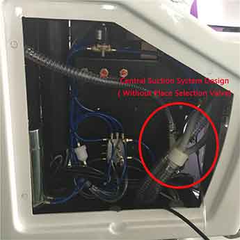 The system with a place selection valve is like a negative pressure switch. When the switch is turned on, the negative pressure will enter the machine. When the switch is closed, the negative pressure will not enter,so this design will reduce the workload of the central suction system.Thus, the work efficiency is improved.